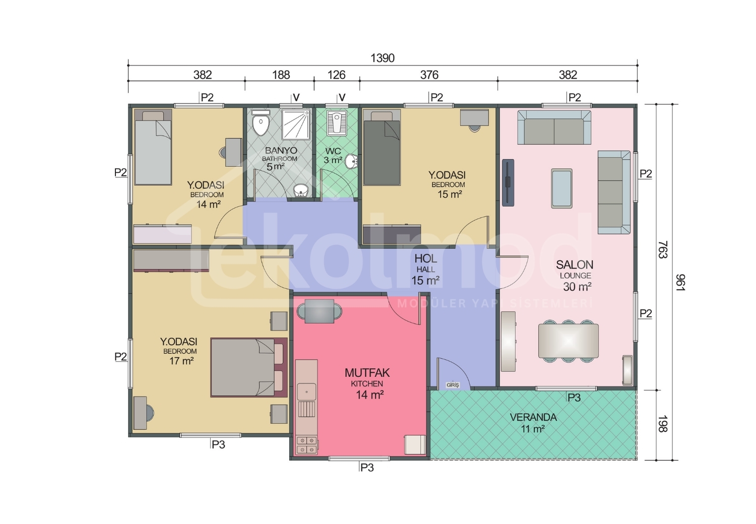 Zemin betonu, hafriyat, yer ve duvar kaplamaları (seramik, parke, fayans vb.), bina dışı bağlantılar (elektrik, su, pissu), belediye izinleri, ısıtma-soğutma sistemleri, nakliye ve montaj ekibinin konaklama/yemek masrafları müşteriye aittir.