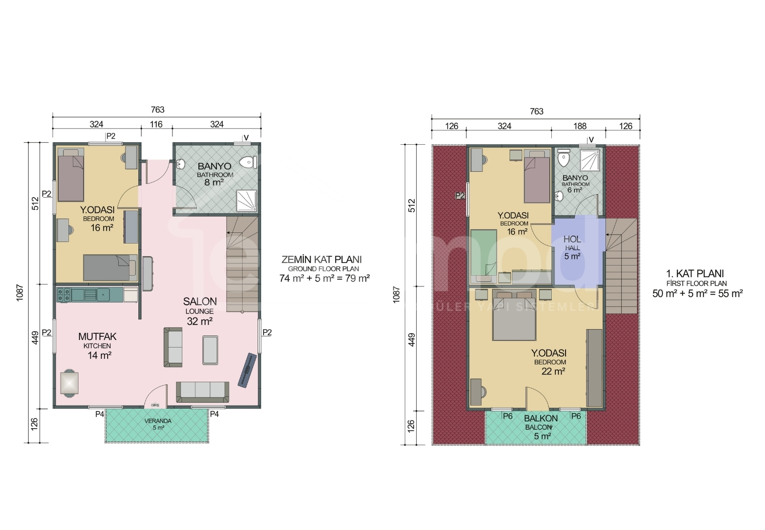 | Çatı Kaplaması | Boyalı Galvaniz Sac, Metal Kiremit (Opsiyonel), Shingle (Opsiyonel) |