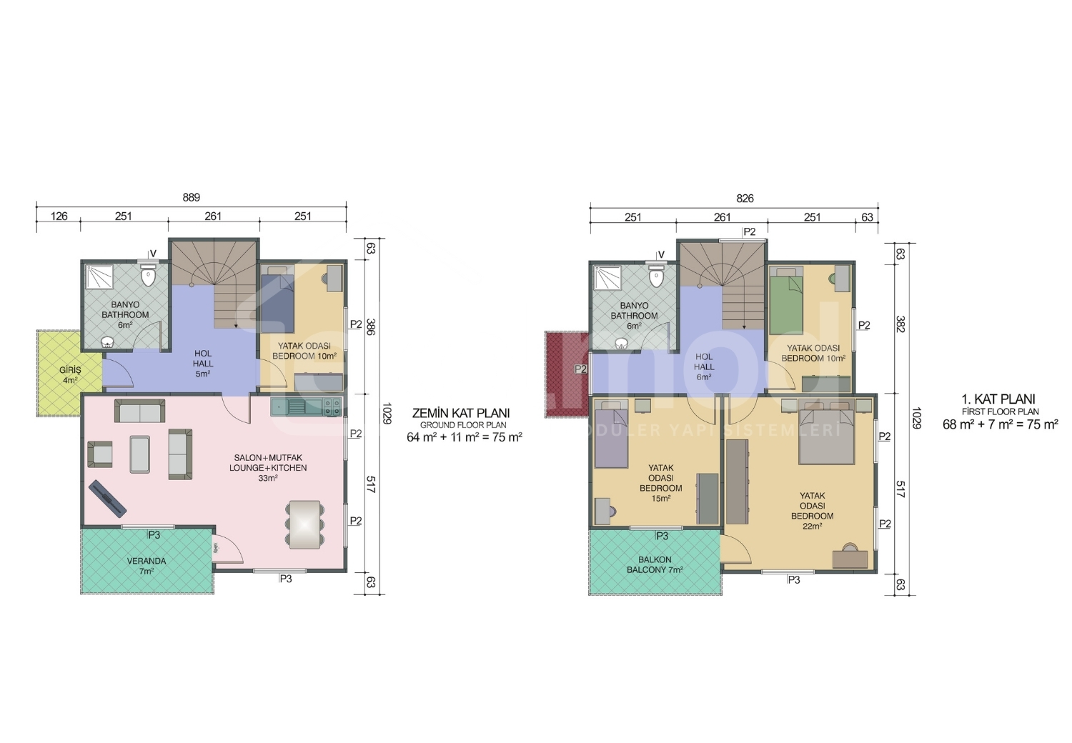 Ortalama 100 m² tek katlı bir ev, 10-15 iş gününde teslim edilir. Montajı 7, boya işleri 3 gün içinde tamamlanır.