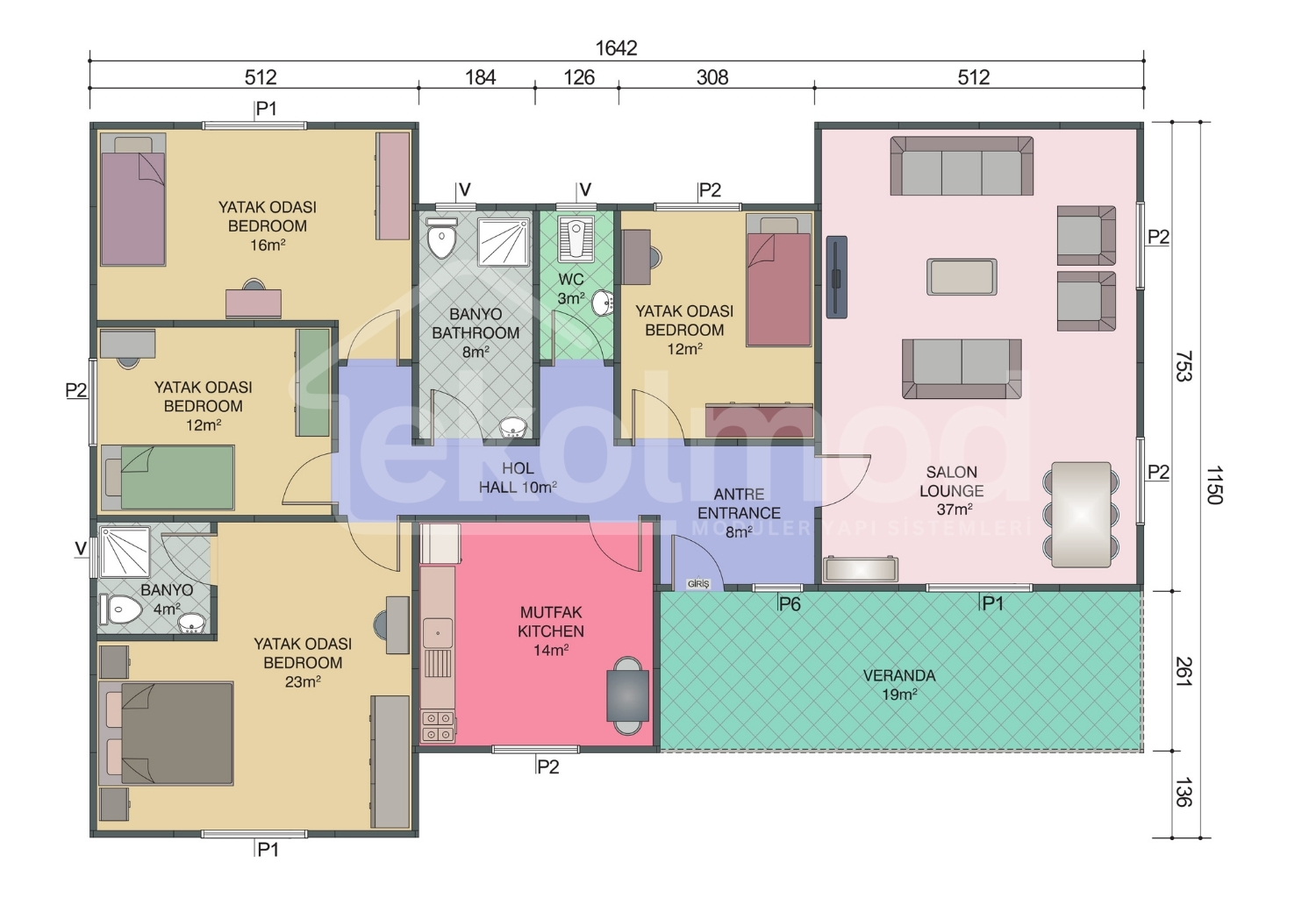 Zemin betonu, hafriyat, yer ve duvar kaplamaları (seramik, parke, fayans vb.), bina dışı bağlantılar (elektrik, su, pissu), belediye izinleri, ısıtma-soğutma sistemleri, nakliye ve montaj ekibinin konaklama/yemek masrafları müşteriye aittir.