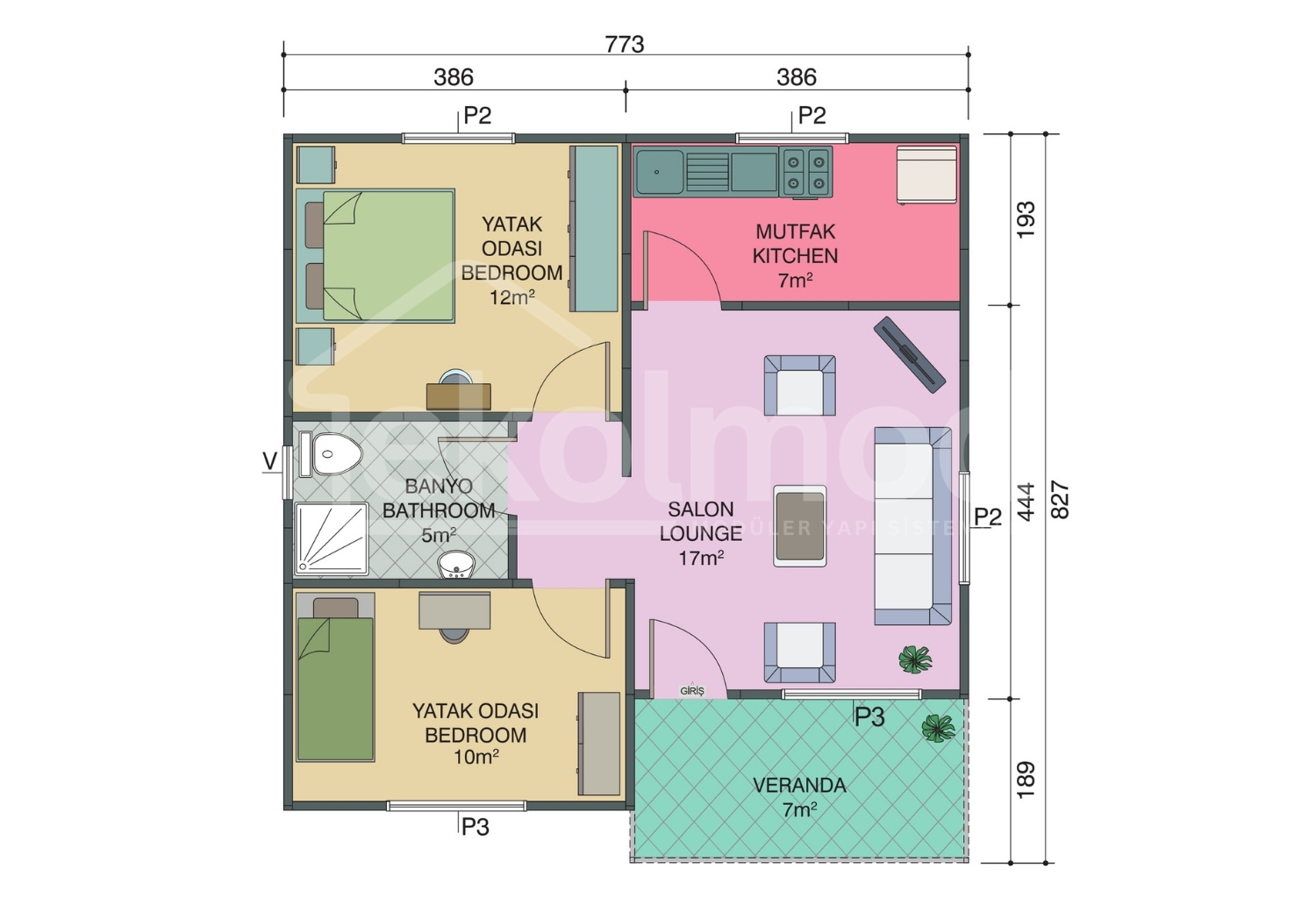 | Çatı Kaplaması | Boyalı Galvaniz Sac, Metal Kiremit (Opsiyonel), Shingle (Opsiyonel) |