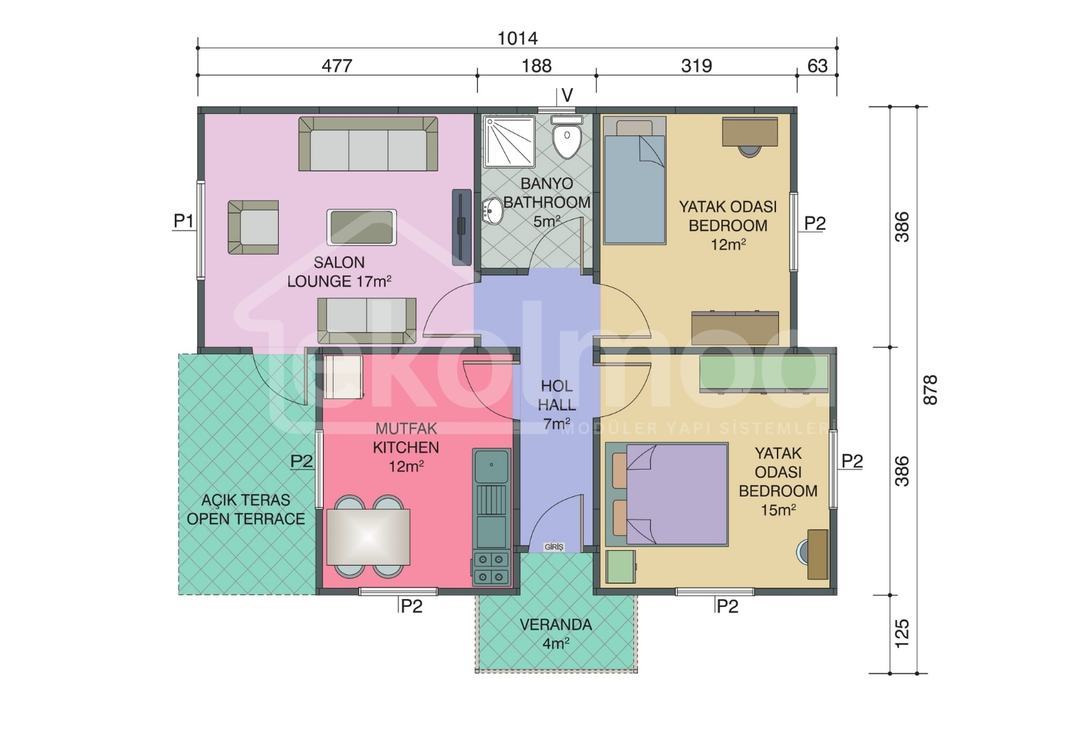 Zemin betonu, hafriyat, yer ve duvar kaplamaları (seramik, parke, fayans vb.), bina dışı bağlantılar (elektrik, su, pissu), belediye izinleri, ısıtma-soğutma sistemleri, nakliye ve montaj ekibinin konaklama/yemek masrafları müşteriye aittir.