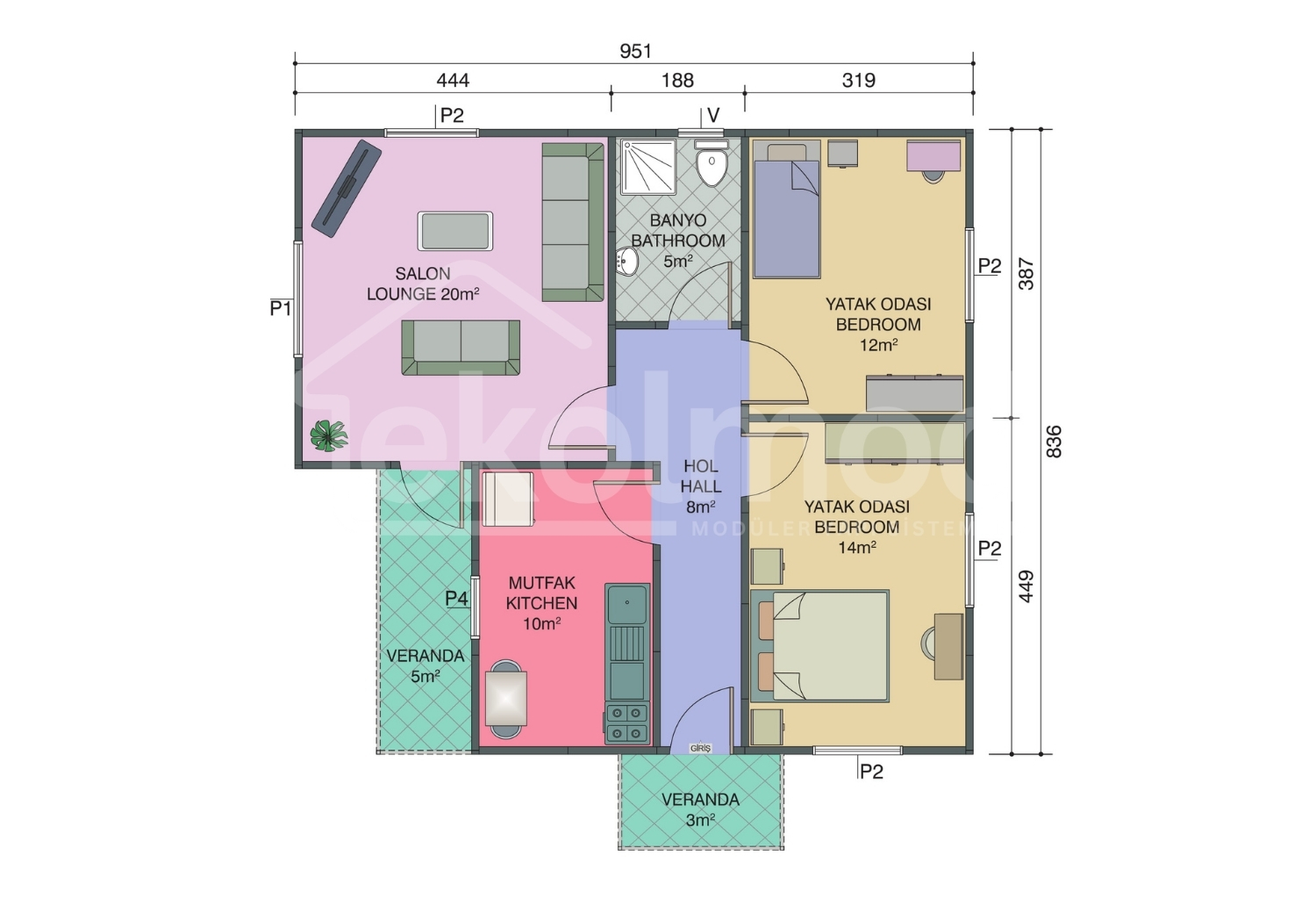 Zemin betonu, hafriyat, yer ve duvar kaplamaları (seramik, parke, fayans vb.), bina dışı bağlantılar (elektrik, su, pissu), belediye izinleri, ısıtma-soğutma sistemleri, nakliye ve montaj ekibinin konaklama/yemek masrafları müşteriye aittir.